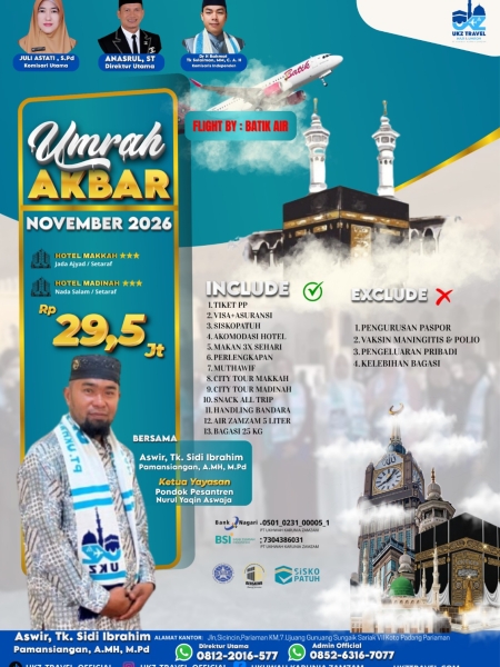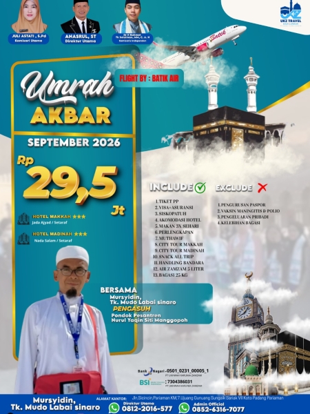 Dengan semangat melayani tamu-tamu Allah, UKZ TRAVEL fokus pada kualitas ibadah, profesional dalam melayani, dan amanah dalam kepercayaan sehingga siap "Menemani Sepenuh Hati" ke tanah suci.