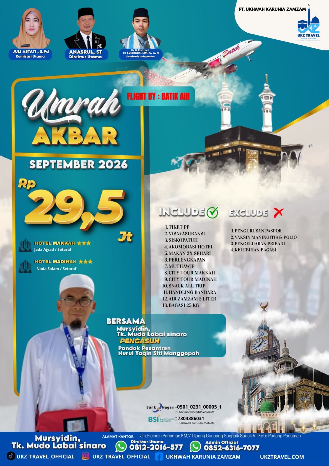 - Pembatalan H-30 dikenakan biaya Rp. 2,500,000/Jama'ah
