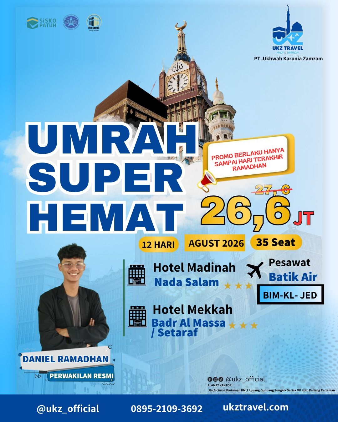 - Pembatalan H-30 dikenakan biaya Rp. 2,500,000/Jama'ah
